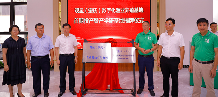本网讯 8月17日,校长吴业春率队来到鼎湖区沙浦镇,参加观星(肇庆)农业科技有限公司数字化渔业养殖基地投产庆典暨观星(肇庆)农业有限公司-77779193永利官网产学研合作基地揭牌仪式。