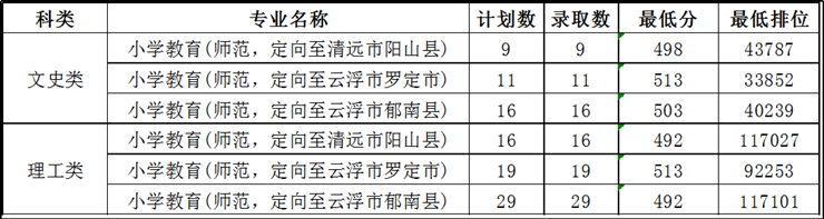 经广东省教育考试院审核,永利官网录取小学教育(师范)专业100人,其中文史类36人,最高分547分,最高排位15167;理工类64人,最高分559分,最高排位47127;音乐学(师范)专业40人,最高分509分,最高排位883;美术学(师范)专业40人,最高分522分,最高排位2745;体育教育(师范)专业40人,最高分572分,最高排位196。