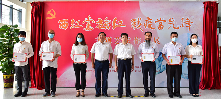 本网讯 6月29日,校党委书记曾桓松、校党委副书记谢冠华出席由市委组织部、永利官网和市图书馆联合举办的“西江党旗红 战疫当先锋”主题艺术作品展揭幕式。曾桓松与市委常委、市委组织部部长林飞鸣共同为作品展揭幕。各市直机关代表参加。