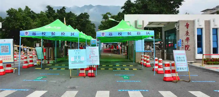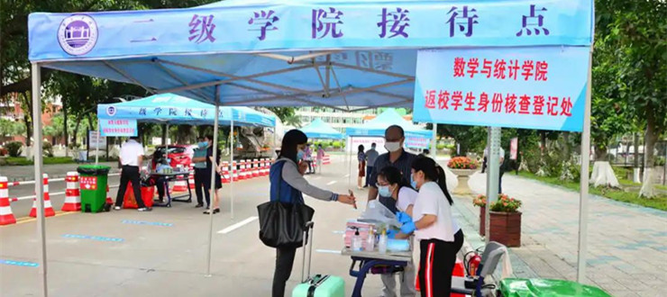 从上午开始,第一批次返校的毕业生陆续抵校。为迎接同学们回来,职能部门和二级学院相向而行,共同行动,早早就在校门接待点做好了准备。每个同学到校后,都会得到热情周到的服务,一步一个指引地进行核实返校名单、测量体温、消毒行李、更换口罩、登记报到信息、领取宿舍防疫物品等事项。整个过程一环扣一环,非常顺利。而在完成进校手续后,每个同学返回自己的宿舍,正式回到熟悉的校园生活。