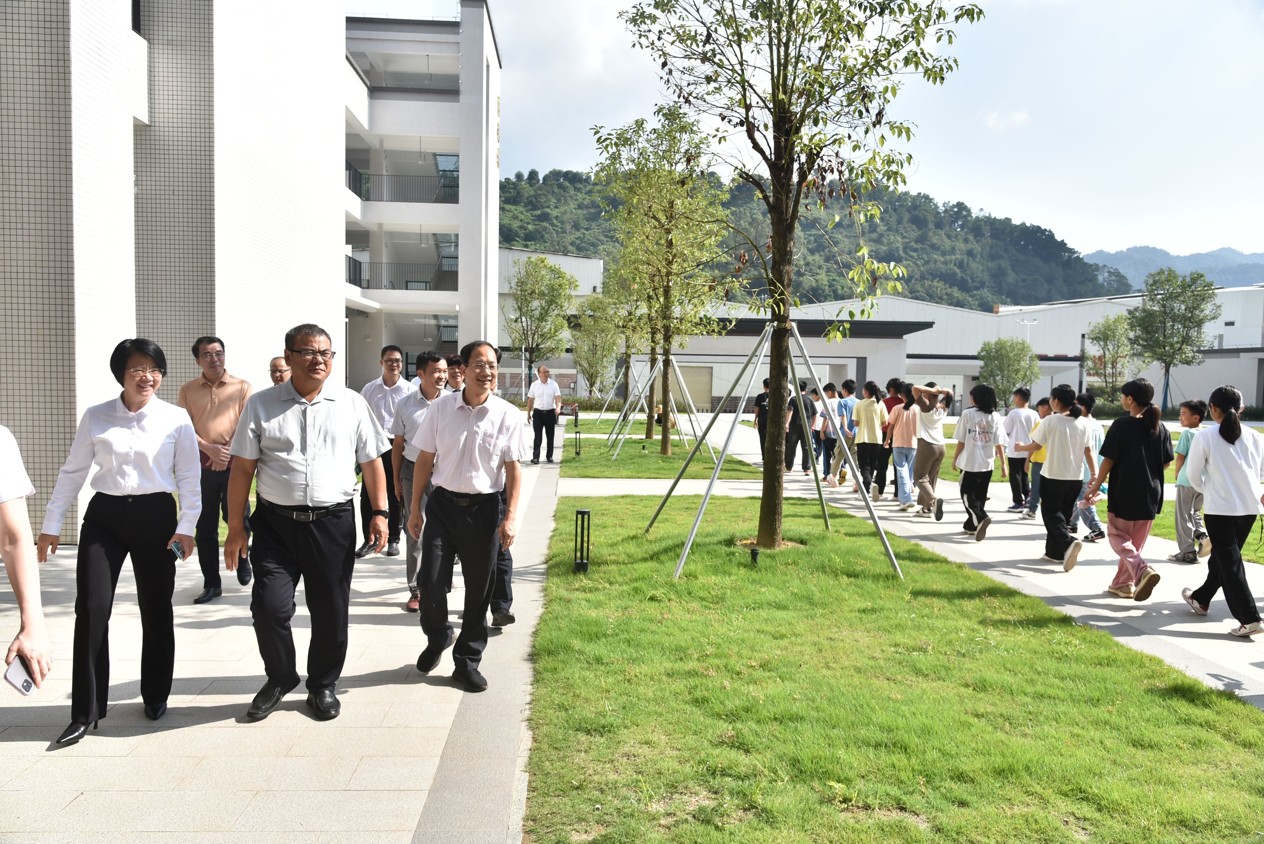 与会前,学院一行在云安区教育局领导陪同下一起前往云安区高标准样板建设鲲鹏第二小学、面上学校石城中学进行实地考察,详细了解学校基础设施、教学教育、校园文化品牌打造和AI运动建设情况。