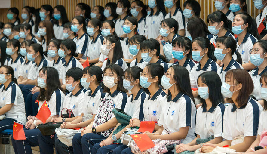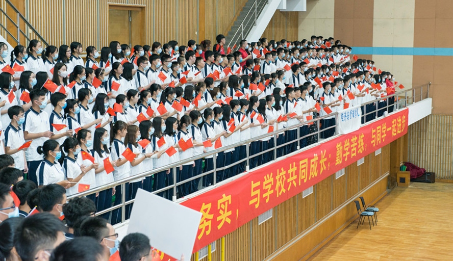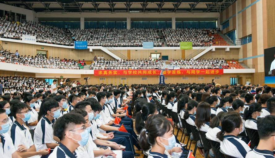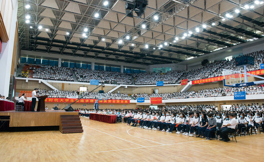 现场,新生们身着校服,有序就坐,英姿抖擞,姿态昂扬,聆听学校送给他们的殷切寄语,以这次“开学典礼”作为大学“第一课”,满怀憧憬投入大学新生活。