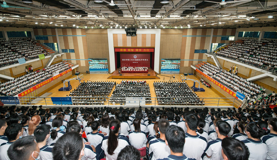 校领导班子、校长助理、党委委员出席开学典礼,相关职能部门负责人、各二级学院党委书记、院长、副书记、辅导员、带班党员、新生班班主任、学生党员及全体2020级新生参加。校党委副书记谢冠华主持。