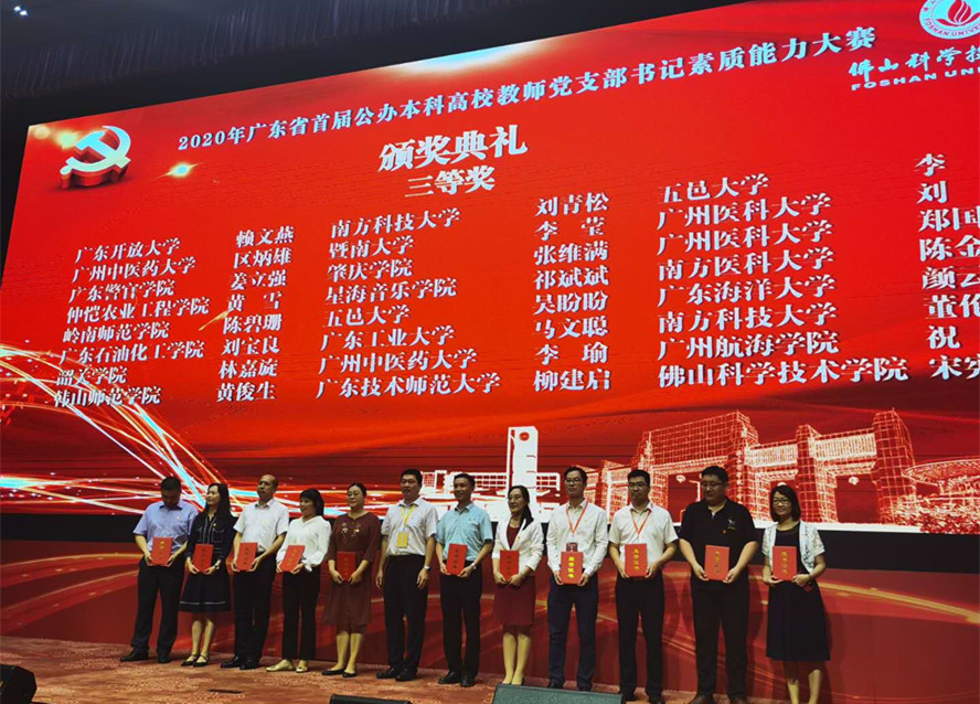本网讯 由省委教育工委主办的广东省首届公办本科高校教师党支部书记素质能力大赛决赛近日在佛山举行,永利官网马克思主义学院“纲要”教研室教师党支部书记张维满副教授喜获三等奖。