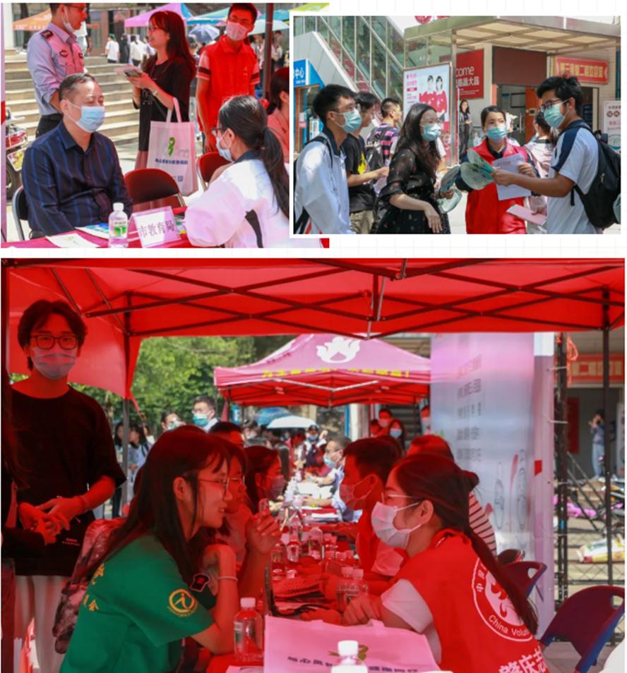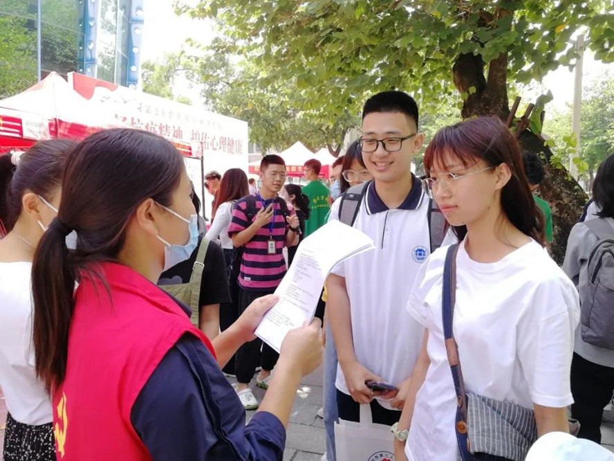 10月10日,活动在紫荆路第三饭堂侧展开。市卫生健康局二级调研员伍润文,校党委副书记谢冠华等领导出席了本次活动。参加活动的砚园学子众多,为做好防疫工作,大家带着口罩有序排队咨询。