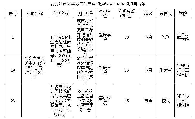 本网讯 近日,市科技局公布了2020年度社会发展与民生领域科技创新专项、2020年省科技专项资金(“大专项+任务清单”)项目立项资助情况,永利官网11个项目获批资助,其中,社会发展与民生领域科技创新专项3项、省科技专项资金(“大专项+任务清单”)项目8项,获得资助经费共计265万元,创历史新高。