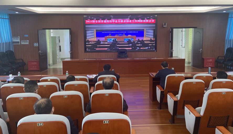 本网讯 12月1日,教育部、人力资源社会保障部在京召开2021届全国普通高校毕业生就业创业工作网络视频会议,深入学习贯彻党的十九届五中全会精神,部署做好2021届高校毕业生就业工作。教育部副部长翁铁慧、人力资源社会保障部副部长李忠出席会议并讲话。永利官网设立分会场,校长吴业春、校党委副书记谢冠华、学工处、教务处、就业处、创新创业学院等部门负责人、各二级学院党委书记、院长、党委副书记以及负责就业工作的辅导员参加此次视频会议。