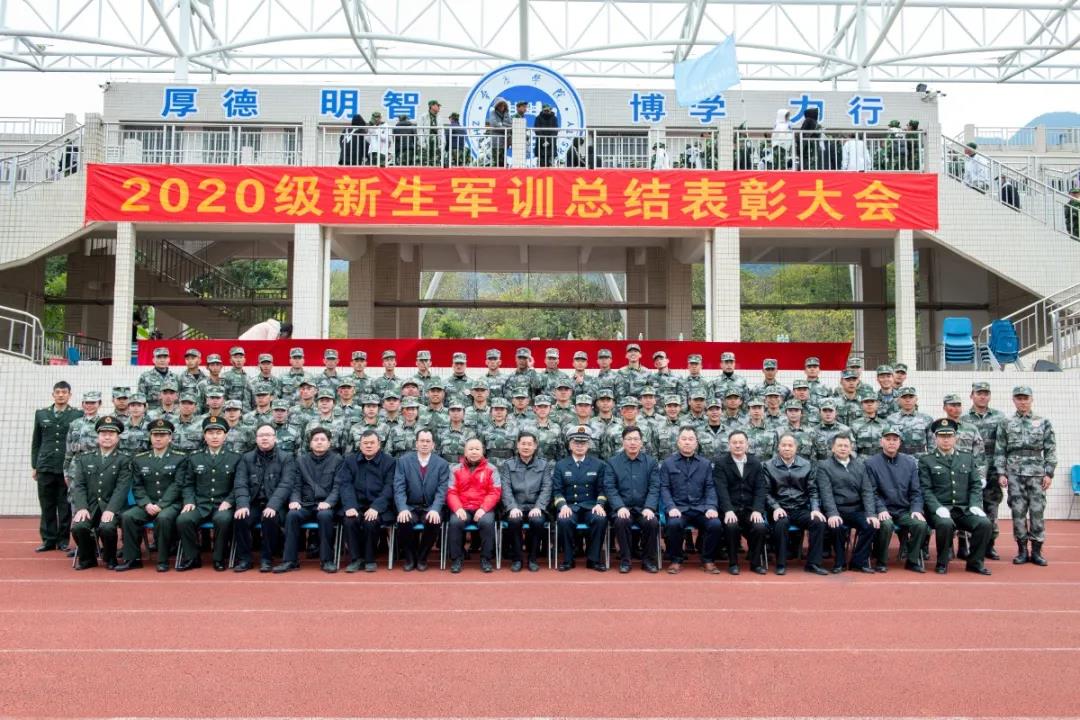 肇庆军分区战备建设处处长李帆上校、副团职参谋孙华刚中校,校长吴业春,校党委副书记、纪委书记黄劲松,校党委副书记谢冠华,副校长林俊睦、肖起清、李新昌,校长助理胡正发等学校领导出席本次军训总结表彰大会,学校军训工作领导小组成员和各二级学院党委书记、院长在主席台就坐。大会由武装部部长、军训团团长黄镜辉主持。