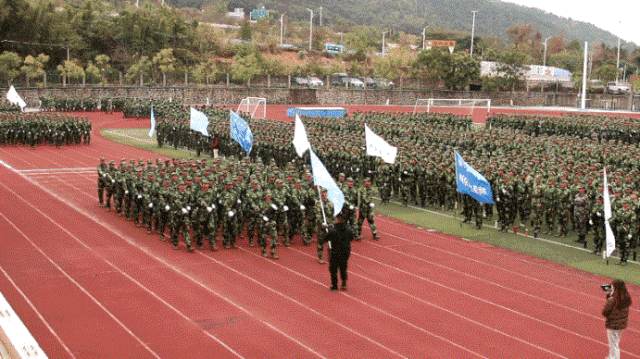 此刻新生们挺拔的军姿