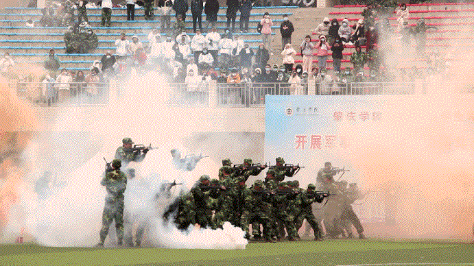 “‘朔气传金柝,寒光照铁衣’,刚才的军训汇演,同学们顶着寒风,精神抖擞,斗志昂扬,英姿飒爽,气势磅礴,展示出新时代青年听党指挥,能打胜仗,作风优良的英雄本色,展现了砚园学子迎接挑战、敢于战胜一切困难的决心和信心。”
