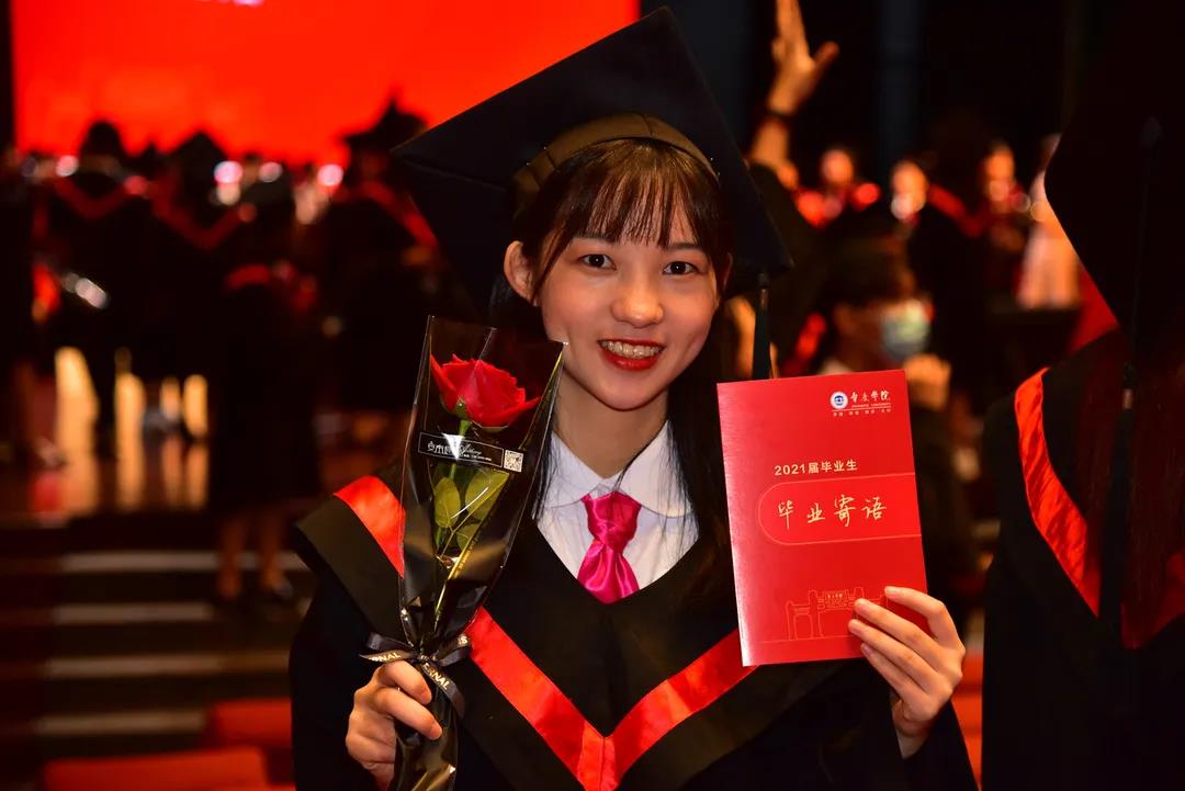 在临别之际,学生代表、教育科学学院17级应用心理学2班的吴敏茹同学向母校表达了深深的感激之情,她说,面对未来,她会保持清醒的头脑,保持乐观的态度,将在砚园习得的追梦与奋进的力量与生命融汇在一起,主动拥抱这个属于追梦人和奋斗者的时代,用不懈的努力创造更大的人生价值。