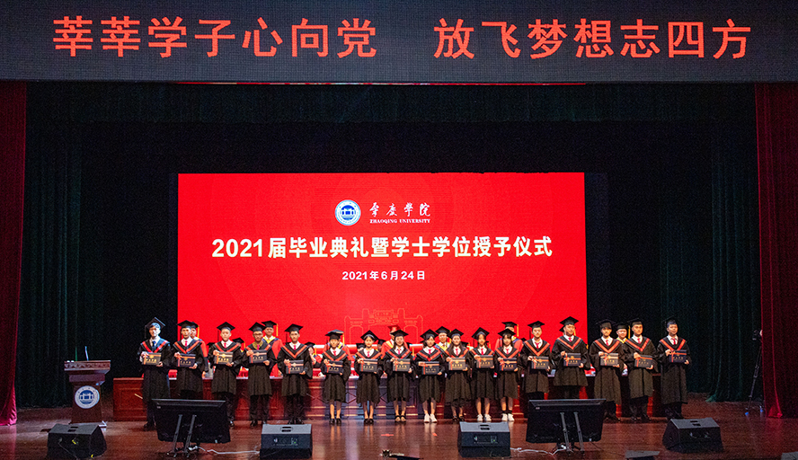 典礼上,副校长肖起清宣读2021届优秀毕业生表彰决定、2021届学士学位与辅修学士学位授予决定等文件。本年度共有来自17个二级学院、61个专业的5336名同学顺利毕业,其中643名毕业生获评“77779193永利官网2021届优秀毕业生”荣誉称号;另有171名同学通过自己努力取得了辅修学士学位。