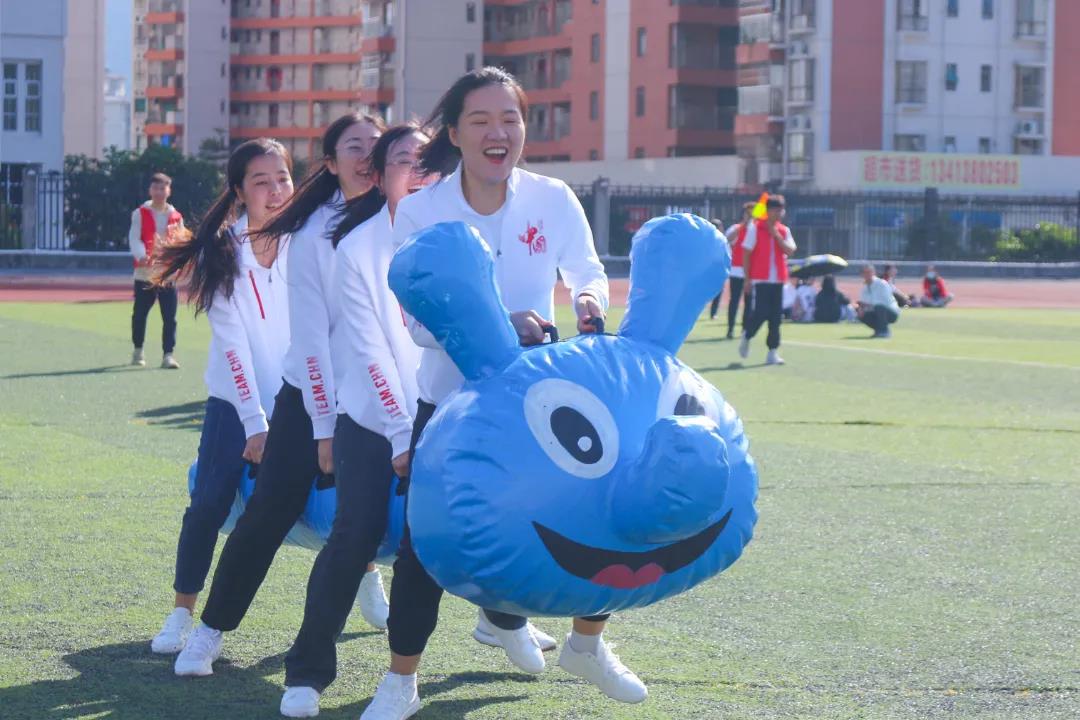 伴随着欢声和笑语,教职工运动会也在同时热烈进行中。教职工运动员以工会单位为组别,齐心协力完成“毛毛虫”、“心心相印”、“鸿运当头”等趣味赛事和定向越野赛,部分教职工还在短跑、跳远、掷实心球等个人竞赛项目中顽强拼搏、奋勇向前,展现出砚园教师的活力与自信。