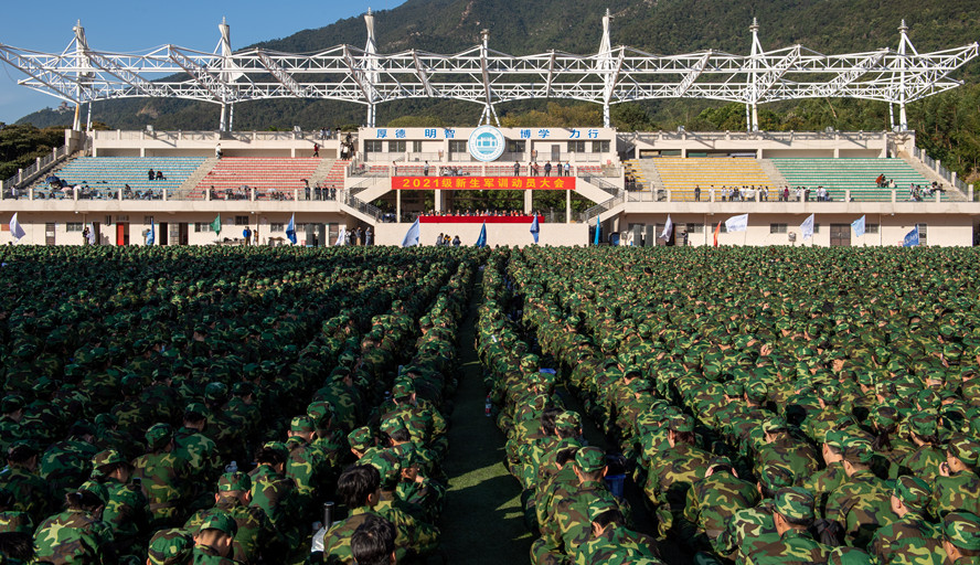 动员大会结束后,教官带领各连队到达指定场所开展训练。