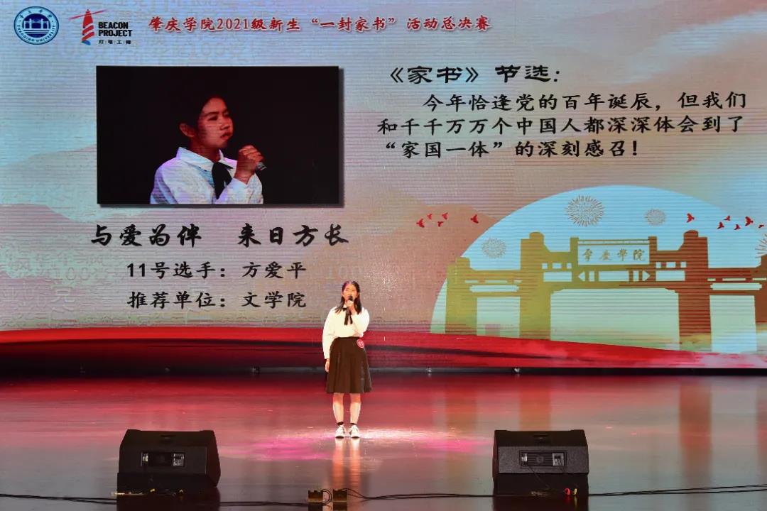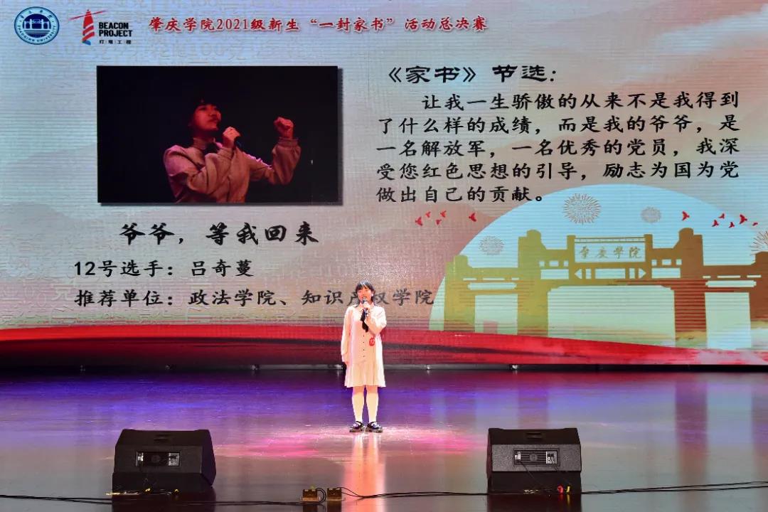 本网讯 言语道不尽思念,文字写不尽故乡,在人情味浓的砚园里,“一封家书”的故事总在不断上演。12月9日晚,永利官网举办2021级新生“一封家书”活动总决赛。12封家书从2790件参赛作品中脱颖而出,12位作者站在了学校剧场的大舞台上,他们把养育之恩和家国情怀,用诵读的方式向全场观众深情讲述,也让这堂特别的思政课温情满满。