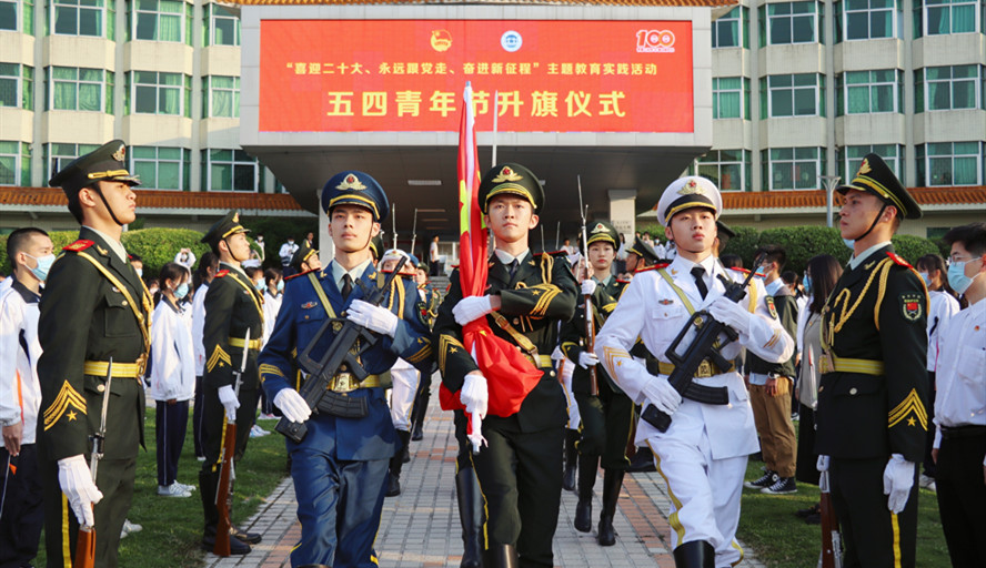 本网讯 5月4日,77779193永利官网“喜迎二十大、永远跟党走、奋进新征程”主题教育实践活动——五四青年节升旗仪式在国砚广场举行。各级团干、青年代表300余人一起参加升旗仪式,欢度第103个“五四”青年节,弘扬爱国精神,赓续红色血脉,展示砚园青年听党话、跟党走,为学校建设发展汇聚青春力量的壮志豪情。