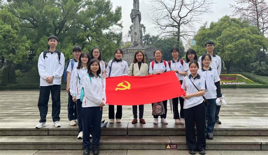 重走起义路的第一站来到了广州起义纪念馆。通过一帧帧照片,一件件历史见证物以及朋辈讲解员的解说,党员重温了广州起义的革命历程,追忆红色故事。第二站,师生们来到了广州起义烈士陵园,党员们跟着朋辈讲解员的指引,瞻仰了广州公社烈士之墓、叶剑英纪念碑、“刑场上的婚礼”雕像纪念广场等地,感悟革命烈士的壮举和精神。