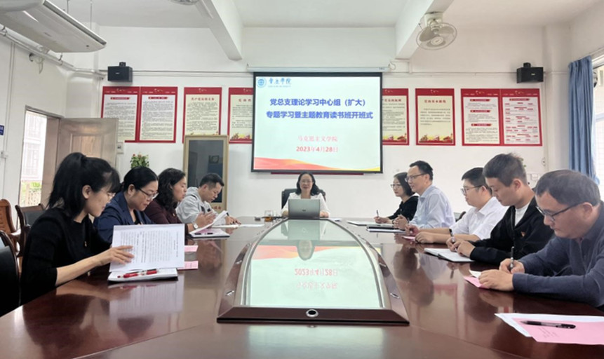 本网讯 428日,马克思主义学院召开党总支理论学习中心组(扩大)专题学习暨主题教育读书班开班式。会议由学院党总支书记、院长曹顺霞主持,学院支部书记和教研室主任出席会议并作交流发言。