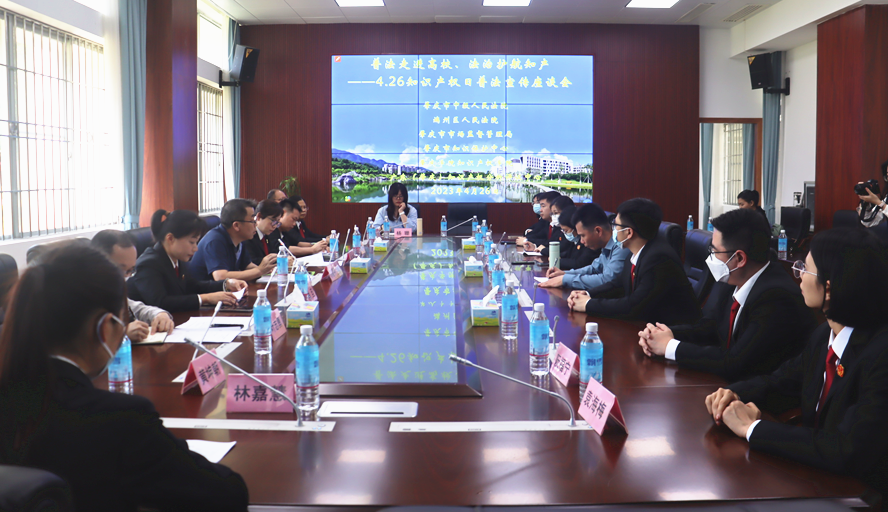 本网讯 4月26日,在第23个世界知识产权日来临之时,政法学院联合肇庆市中级人民法院、肇庆市市场监督管理局、肇庆市知识产权保护中心、端州区人民法院,举办“普法走进高校、法治护航知产”活动。