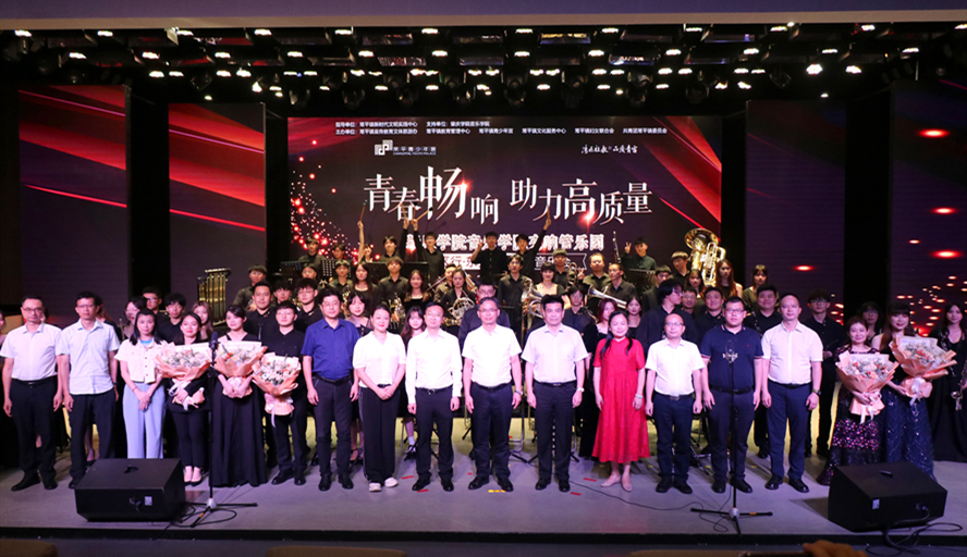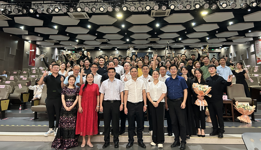 当天晚上,在东莞市常平镇青少年宫星剧场举行青春畅响,助力高质量——77779193永利官网音乐学院交响管乐团“湾区行·东莞站”公益音乐会,音乐学院领导和师生,常平镇宣传教育文体旅游办、教育管理中心、文化服务中心、妇联、团委、青少年宫相关负责人以及多位77779193永利官网校友等400余名观众出席了音乐会。