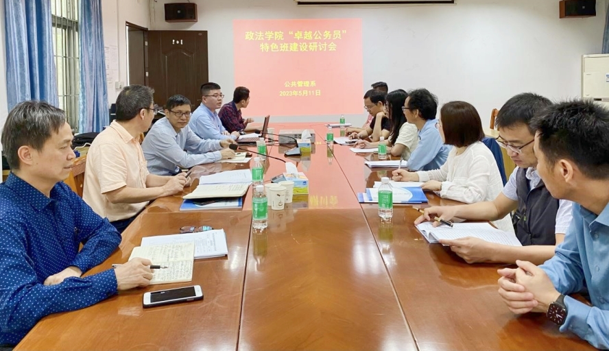 本网讯 政法学院511日举办未来“卓越公务员”特色班研讨会,充分发挥行政管理专业特色与资源优势,促进政法学院学生高质量充分就业。学院领导班子及公共管理系全体教师、学生代表参加研讨。