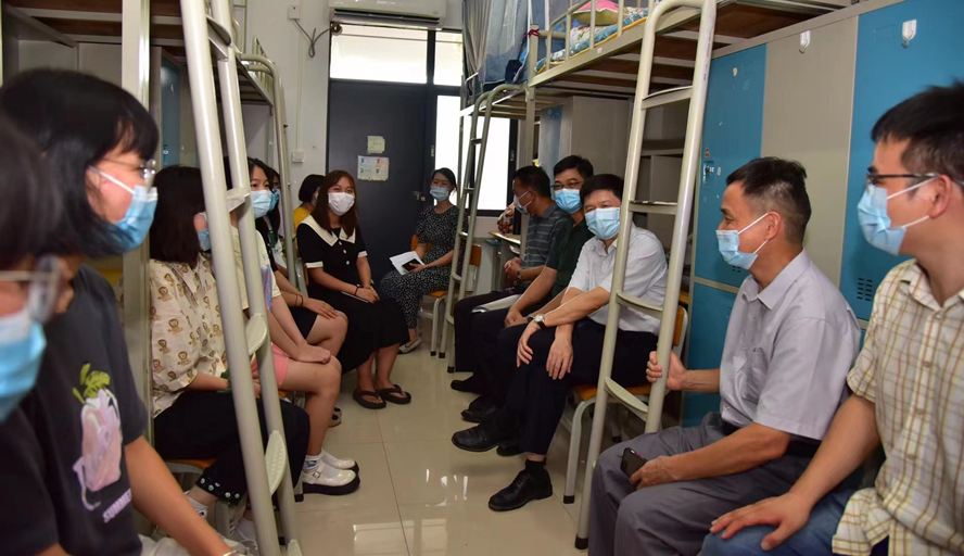 党建工作、学生工作进宿舍,成为学院一贯以来的制度要求。学院定期组织学工队伍、带班党员深入学生宿舍,深入推进“宿舍思政” 育人新模式,把宿舍作为关心服务学生、团结凝聚学生的桥梁纽带、重要阵地,以这种贴近学生生活的方式,及时了解学生的心理状态、日常生活、思想诉求,针对性解决学生的困惑和实际困难,为学生办实事。切实做到管理与育人相结合,解决实际问题与解决思想问题相结合,在关心学生、服务学生中教育学生、引导学生。