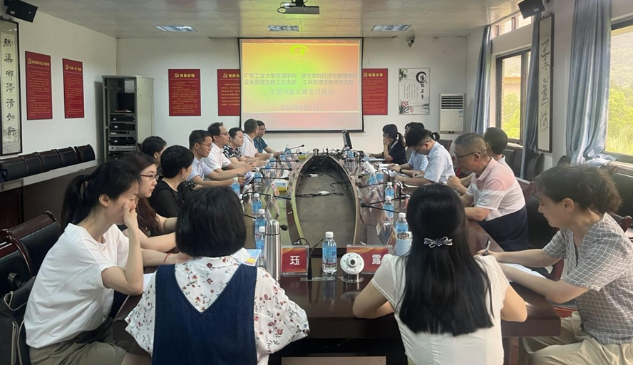 本网讯 为充分发挥党建引领作用,提升党建工作水平,促进以支部为载体的党建和业务工作深度融合、双向提升,6月17日,经济与管理学院工商管理系与广东工业大学管理学院企业管理系开展支部共建活动。广东工业大学企业管理系教工党支部11名党员在支部书记陈修德的带领下来学院开展交流,广东工业大学挂职经济与管理学院副院长王永健、经济与管理学院党委委员邓孙棠以及经济与管理学院其他教师党支部代表一起参加活动,会议由工商管理系教师党支部书记周长锋主持。