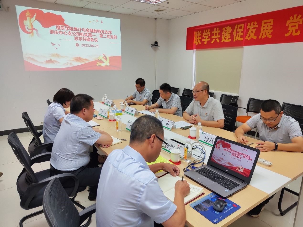 本网讯 为扎实开展主题教育,6月21日,数学院统计与金融教师党支部与中国人寿财产保险股份有限公司肇庆中心支公司(下简称“中支公司”)机关第一,第二党支部开展联学共建活动,数学院党委书记杨帆、副院长吴晓参加。