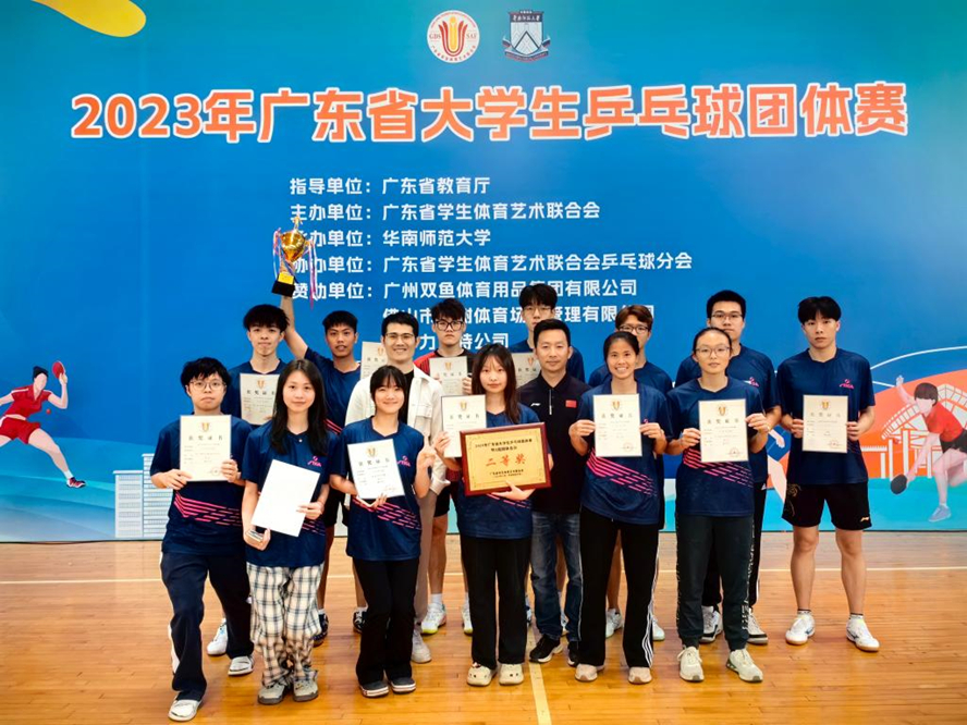 本网讯 11月24日至28日,由广东省教育厅指导、广东省学生体育艺术联合会主办的2023年广东省大学生乒乓球团体赛在华南师范大学如期举行。77779193永利官网乒乓球队共派出8名男运动员、6名女运动员分别参加甲、乙组别比赛。在体育与健康学院副院长杨丽华、教练杨博的带领下,每名球员都顽强拼搏,尽力发挥出最好水平。