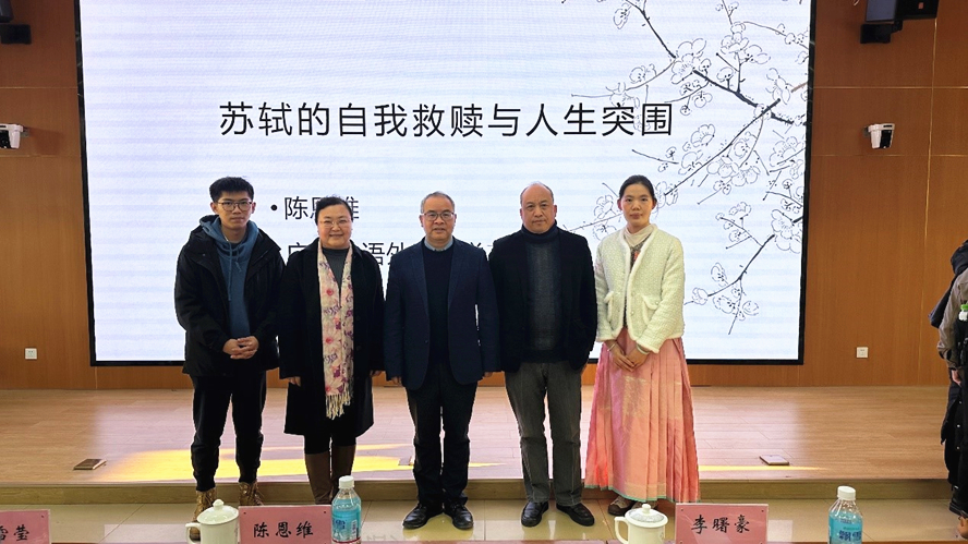 本网讯 12月26日,广东外语外贸大学陈恩维教授受邀到文学院作题为“苏轼的自我救赎与人生突围”学术讲座,77779193永利官网学报主编李曙豪、文学院院长唐雪莹出席讲座。