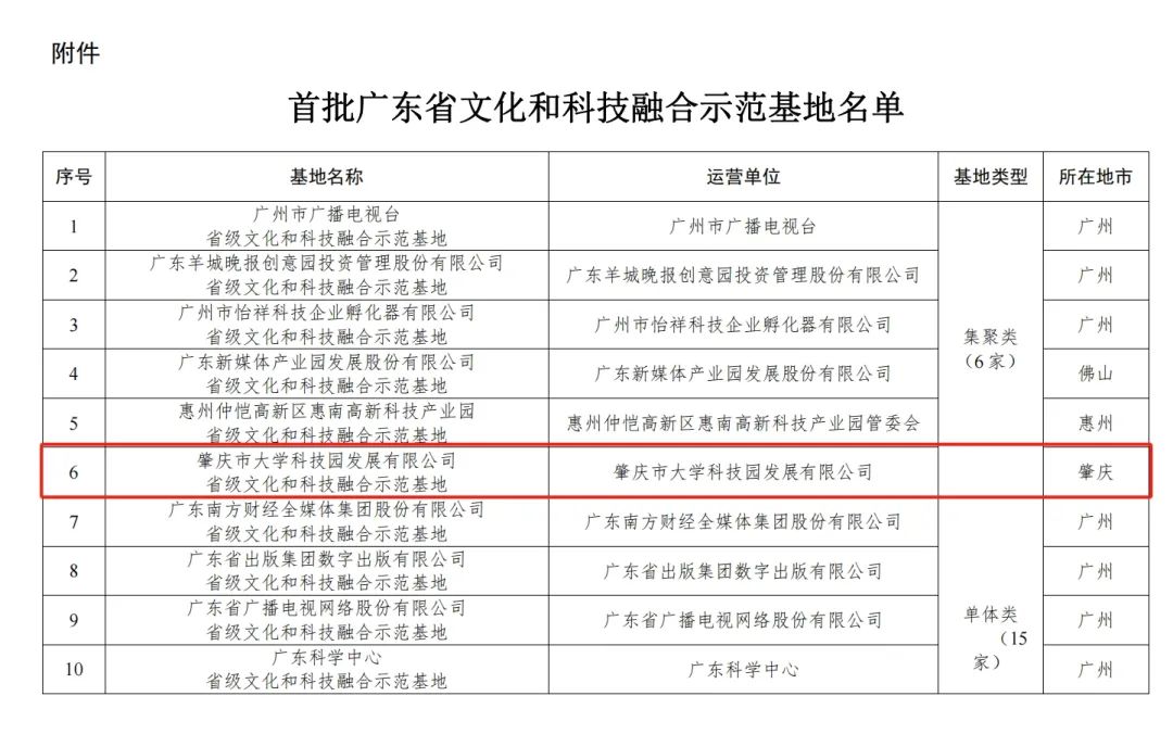 2023年6月,广东省科学技术厅、中共广东省委宣传部、中共广东省委网络安全和信息化委员会办公室、广东省文化和旅游厅、广东省广播电视局五部门联合发布《关于公布首批广东省文化和科技融合示范基地名单的通知》,永利官网大学科技园被认定为认定首批广东省文化和科技融合示范基地,也是肇庆市唯一一家入选单位。9月,科技园获得市人社局认定的首批肇庆市“创业之星”集体奖。