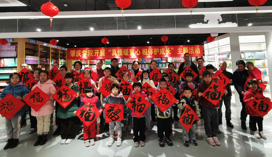 在端州广轩书店的活动现场,有亲子阅读、讲故事、即墨挥毫写春联等,气氛热烈,书墨飘香。肇庆市文联党组成员、专职副主席卢承奕,肇庆市书法家协会主席李刚,学校工会常务副主席梁建梅,离退休党委书记兼关工委常务副主任黎玉玲,校友会、基金会秘书处专职秘书长周建文出席活动。