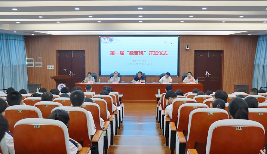 本网讯 7月5日,数学与统计学院举办首届“数苗班”开班仪式。学校副校长肖起清出席,学院党委书记李先强、院长吴晓、副院长谷泽、学业导师代表、辅导员、2021级有意向考研的学生共160余人参加,会议由学院党委副书记高洁云主持。