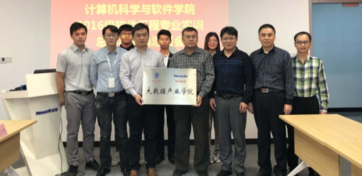 本网讯 近日,计算机学院组织开展“2016级软件工程专业东软睿道班毕业实习总结与成果汇报会”,并在合作企业举行“77779193永利官网大数据产业学院”挂牌仪式。永利官网教务处、计算机学院有关负责人,东软睿道教育信息技术有限公司有关负责人共同参加。