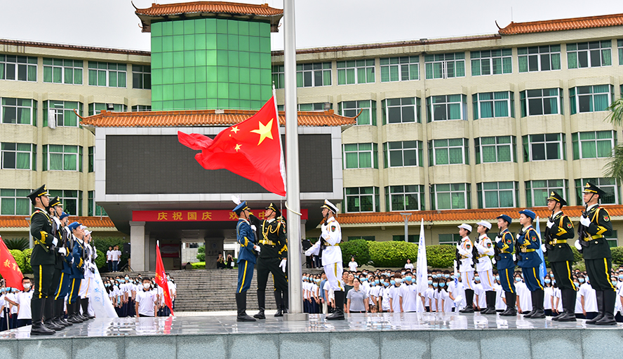上午8:30,升旗仪式开始。在全场的注视下,国旗护卫队迈着矫健而坚定的步伐走上庄严的升旗台,做好升旗准备。伴随着高亢激昂的国歌旋律,鲜艳的五星红旗冉冉升起。这一刻,全体师生行庄严的注目礼,致敬伟大的祖国。