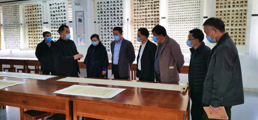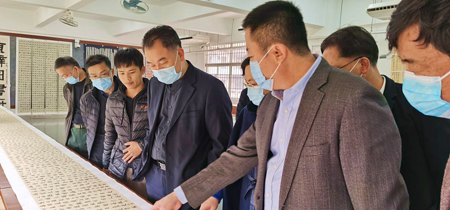 本网讯 1月6日,副校长肖起清来到位于第三教学楼的文学院书法系教室,参观正在那里举行的2019级书法学结课作品展,并对书法学专业建设作出指导。文学院院长唐雪莹、党委书记陈明华参加活动。