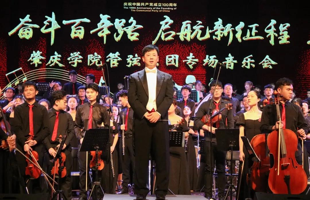 在演奏了管弦乐曲目后,音乐学院合唱团作为特邀嘉宾,与管弦乐团携手献唱歌曲《我和我的祖国》,将这首爱国抒情歌曲献给走过百年岁月的中国共产党。