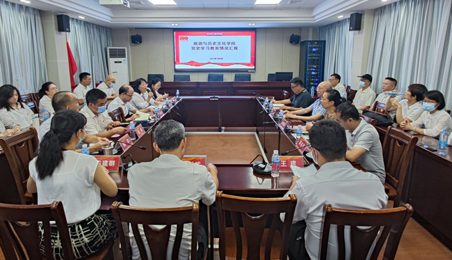 旅游学院党委书记杨雪梅介绍了学院党史学习教育情况。学院党委深入学习领会习近平总书记在党史学习教育动员大会上的重要讲话精神,切实把党史学习教育作为一项重大政治任务,结合自身实际,创新形式组织开展系列特色活动,引导全体师生自觉参与到党史学习教育中来。学院通过专题党课、交流研讨、主题党日等多种形式在师生中开展党史学习教育,推动党史学习教育入脑入心、推动党史学习教育真正落地见效。围绕“办实事、开新局”主题活动,抓好成果转化,用党史学习教育有效推动各项工作开展。