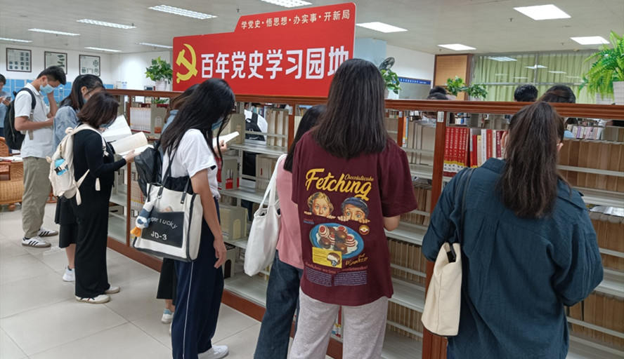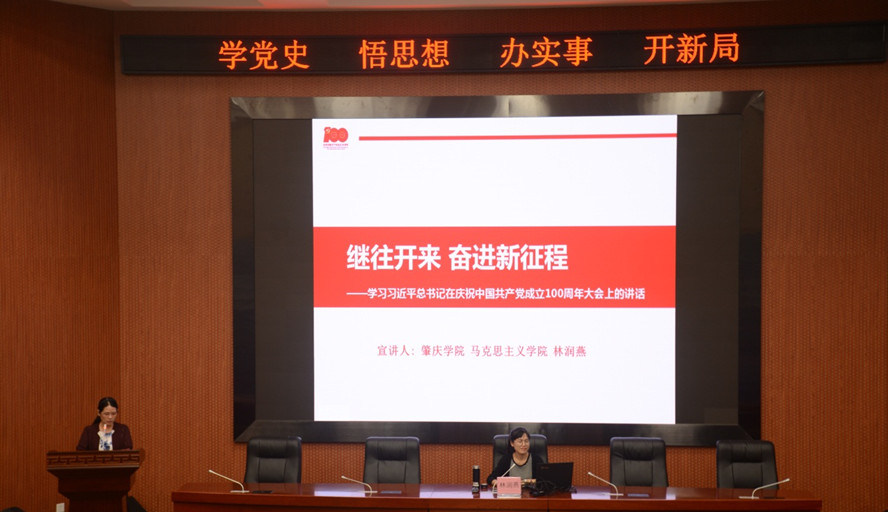 又讯  为深入推动提升党史学习教育成效,近日数学院党委邀请学校党史学习教育宣讲团成员、马克思主义学院的林润燕老师在学术报告厅做了题为《继往开来,奋斗新征程》的习近平总书记“七一”重要讲话精神专题宣讲报告,并组织学生党员到学校图书馆“百年党史”学习园地参观学习,开展主题党日活动。