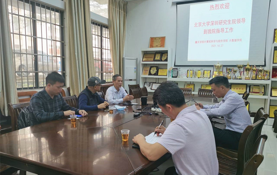 本网讯 10月27日,计算机学院院长邵平与到访的北京大学深圳研究生院赵勇教授一行进行了座谈交流。交流中,邵平介绍了学院的现状、学生实训实习模式等情况,赵勇介绍了北大科创园“诡谷子人工智能开放实验室”的基本情况。双方围绕合作开展产学研、组织学生实习等方面的工作进行了探讨。