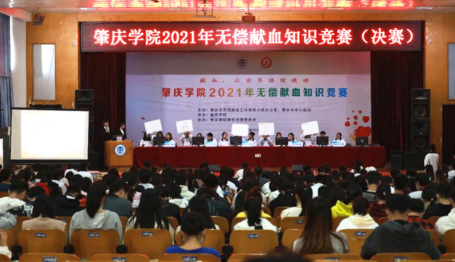 多年来,在肇庆市无偿献血工作领导小组办公室、肇庆市中心血站的指导下,永利官网师生响应号召,积极参与无偿献血,多次获得广东省无偿献血促进奖,2018年荣获全国无偿献血促进奖,为保障肇庆市临床用血作出了积极的贡献。本次大赛为期1个月,全校约12000人参加无偿献血知识竞赛答题,初赛通过“易班”网上进行,根据各二级学院学生的答题得分及参与率,最终选拔出11个二级学院进入决赛。