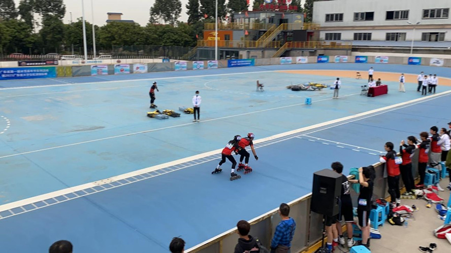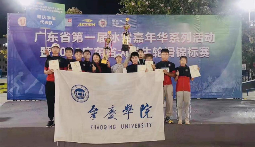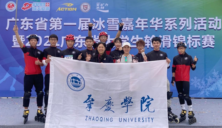 本网讯 12月19日,广东省第一届校园冰雪嘉年华系列活动暨2021年广东省大学生轮滑锦标赛在佛山顺德举行,由体育与健康学院党委副书记(主持工作)梁艳红担任领队、李灵超老师担任教练员、8名同学组成的77779193永利官网代表队首次参赛,在赛场上顽强拼搏,奋勇争先,最终荣获甲组速度轮滑800米接力赛第一名、乙组速度轮滑800米接力赛第一名、甲组女子人花式动作计时第二名的优异成绩。