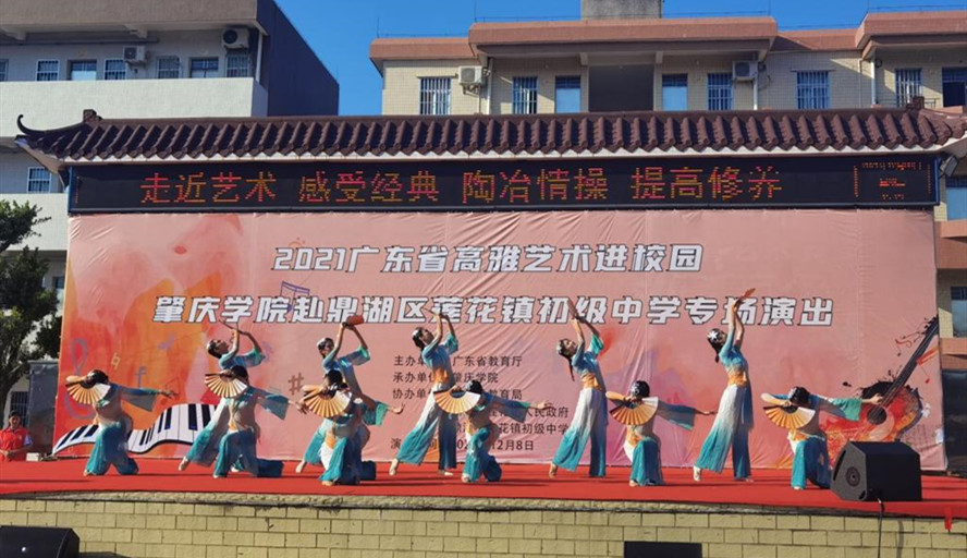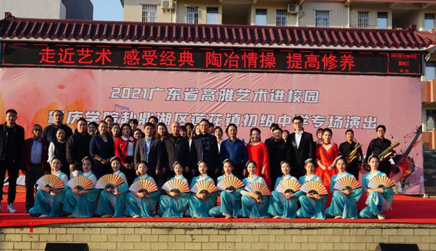 本网讯 作为一场高雅艺术进校园活动,由音乐学院精心组织的音乐舞蹈专场演出12月8日在鼎湖区莲花镇初级中学举行。音乐学院党委书记植可焕、副院长陶媛、鼎湖区莲花镇政府及莲花镇初级中学领导出席。