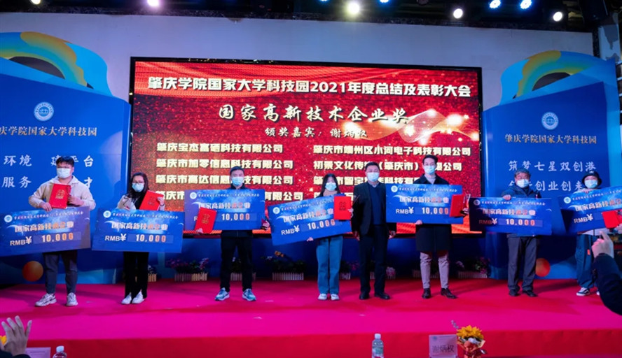 在表彰环节,大会根据园区此前组织开展的考核结果,对8个国家高新技术企业奖、5个科技创新奖、10个创客菁英奖、10个优秀企业奖进行了表彰奖励,科技局和学校领导分别为获奖企业颁发荣誉证书、奖杯和奖金支票。