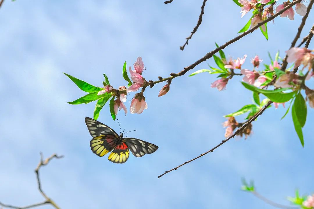 粉白色的杜鹃含苞待放,犹如盘起少女秀发的簪子,散发着甜美浪漫的气息,百花盛放,五彩缤纷,原来,春天就藏在这里。