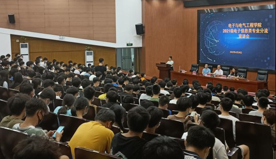 本网讯 4月26日,电子与电气工程学院召开2021级电子信息类专业大类分流宣讲会,通过分流细则解读、专业情况介绍、现场答疑等三个环节,帮助同学们了解各分流专业的特色及分流方式,切实做好后续的大类招生专业分流工作。