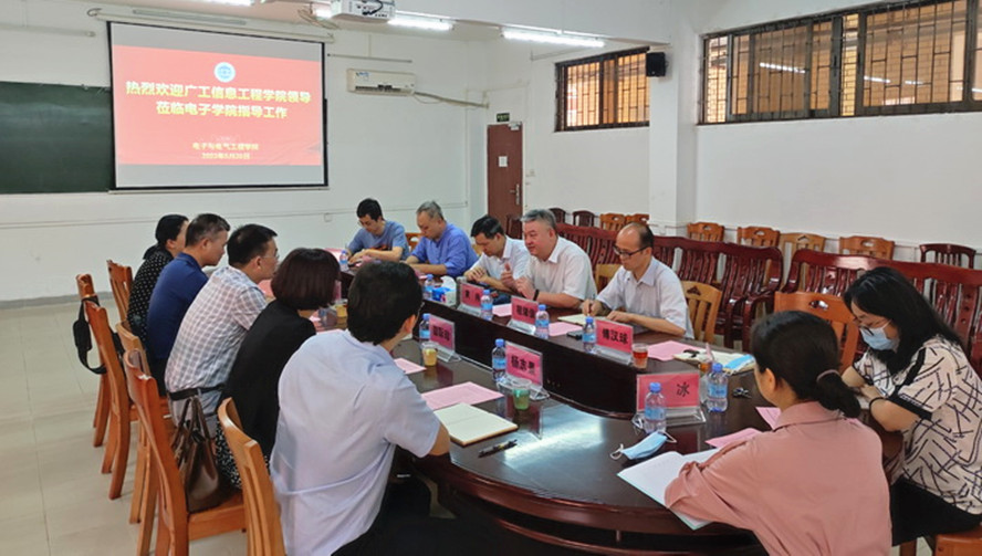 本网讯 5月20日,广东工业大学信息工程学院一行4人在党委书记邵际珍、院长韩国军的带领下来到电子与电气工程学院进行工作交流。