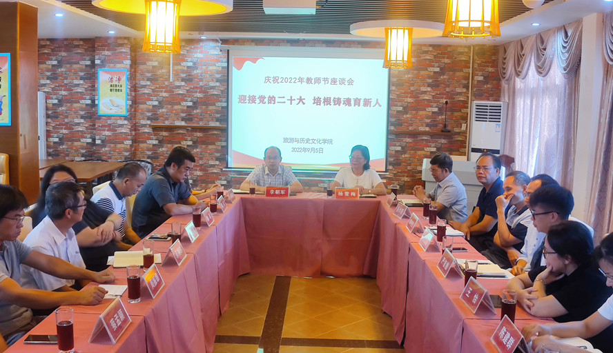 本网讯 在第38个教师节来临之际,9月5日,旅游学院举行“迎接党的二十大 培根铸魂育新人”庆祝教师节座谈会。李朝军院长、杨雪梅书记以及民主党派、台湾教师、香港教师代表参加。