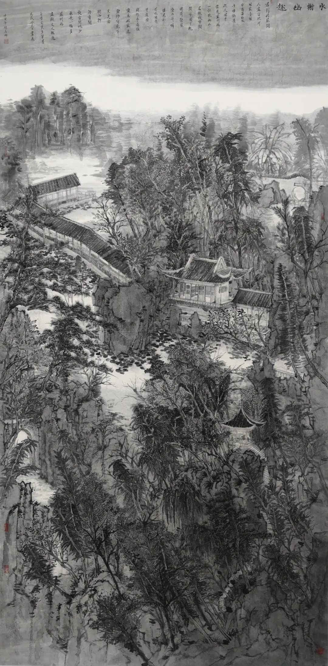 练美娜《水榭幽趣》 国画山水 248cm*129cm (2022) 指导老师:郜笑寒