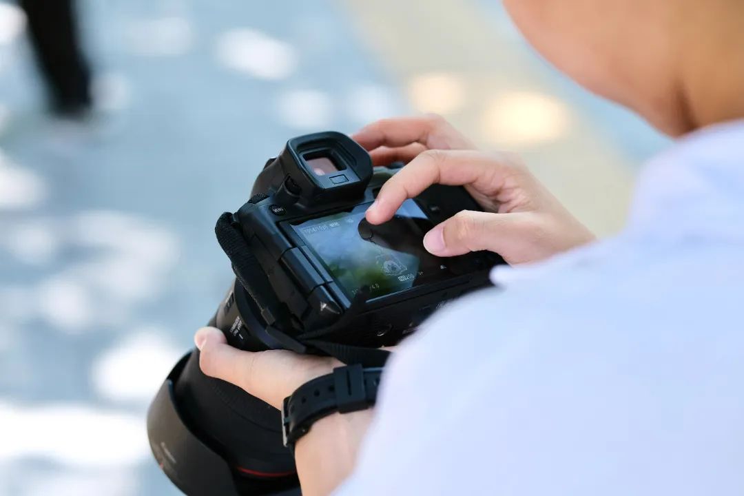 手持着相机奔忙拍摄